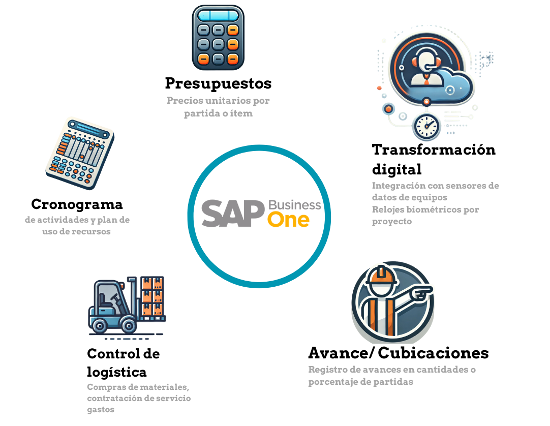 Con SAP Business One, tu empresa constructora podrá gestionar proyectos de manera eficiente, optimizando recursos y costos, y asegurando una integración perfecta entre todas las áreas de tu negocio.